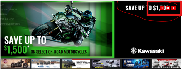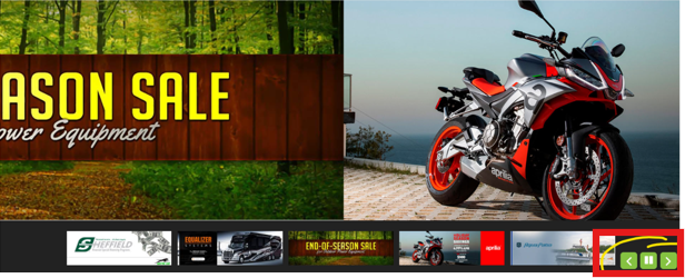 Pause controls now sit unobtrusively in the bottom-right corner and only appear when hovered over, keeping key promotional messaging and inventory details front and center.