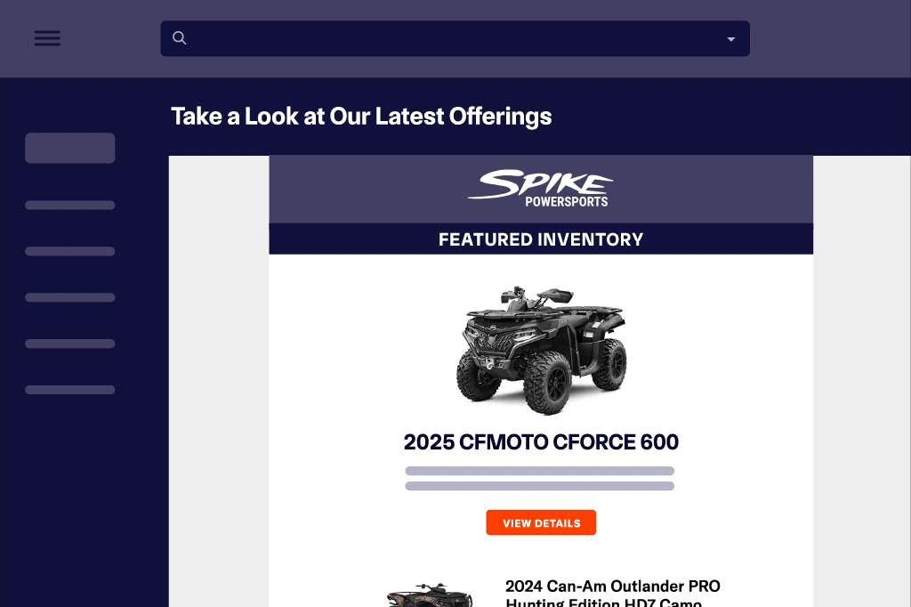 Turn email clicks into direct visits to your Vehicle Detail Pages while saving hours of time by consistently promoting new arrivals or priority units.
