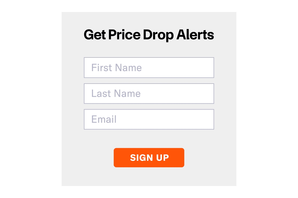 Keep your audience base fresh by turning high-intent buyers into leads with price drop and unit restock alerts that incentivize them to submit their contact information.